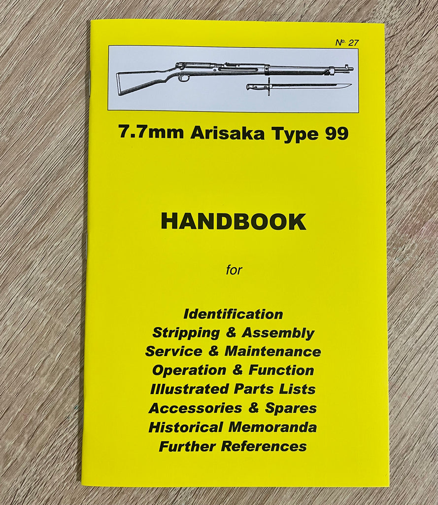 Soft cover, 8½ x 5½ in., 36 pp, with over 40 photos & line drawings. Triple saddle-stitched binding, durable, matte plastic laminated cover. Published 2008, ISBN 0-949749-33-8. References service manuals containing details not published before. Exploded parts drawings, specifications, accessories, maintenance details with historical introduction & description of model/year designations. Ideal for Arisaka collectors and shooters.