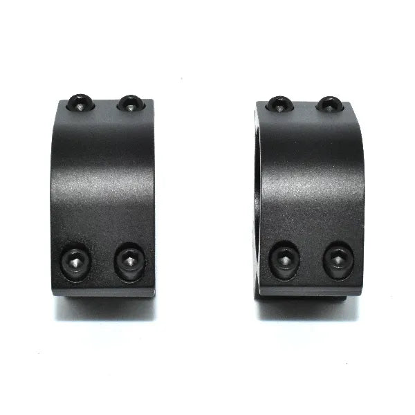 Packaged in a set of two rings. Designed for a 30mm scope tube and to fit onto a 3/8″ Dovetail base (12mm) with double screws and a wide retention 20mm and a reversible clamping system it provides a perfect fit for Dovetails 9.5mm to 13.5mm. A recoil stop pin is provided for use if required.