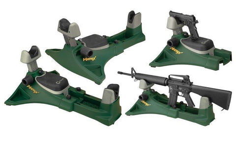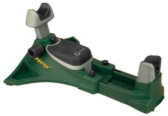 The highly versatile Matrix combines great features and rock-solid stability in an afforadable rest. Central to the design is the innovative, ultra-rigid u-channel frame which allows for quick adjustment in length to perfectly fit any firearm. A convenient storage area incorporated behind the front cradle features a removable lid that adds additional clearance for detachable magazines or bipod equiped firearms when detached, and acts as a rubberized rear support surface for firing handguns when left in place. A spring-loaded tension mechanism and height adjustment knob are great for fast, one handed elevation adjustments keeping the front cradle wobble free through the entire vertical range. Over-molded front and rear supports protect the firearm's finish, but are firm enough to prevent any give or play. The Matrix™ easily converts into a compact front rest by removing the rear portion of the frame. Whehter used as a front rest or as a full-length rest, the Matrix provides stability that maximize your firearms accuracy potential.