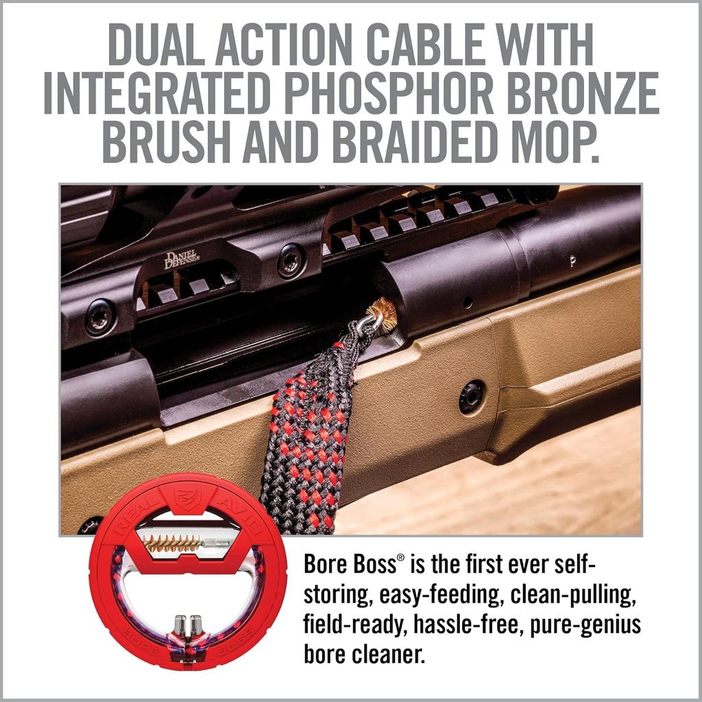 The Real Avid Bore Boss 12‑Gauge – AVBB12G is a compact, fast‑deploying bore cleaning system designed to make shotgun maintenance simple, tidy, and efficient. Featuring a single‑piece pull‑through cable, integrated phosphor‑bronze brush, and braided mop, the Bore Boss delivers a complete barrel clean in one smooth pass.