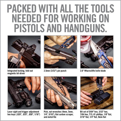 - The Gun Tool AMP® - Pistol offers revolutionary pistol multi-tool functionality for maintaining and customizing handguns.